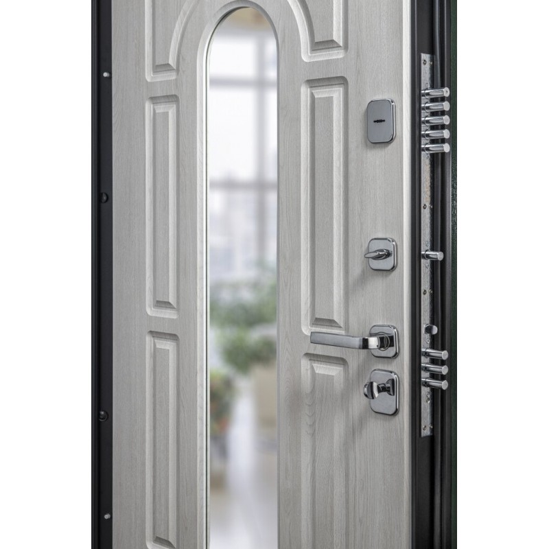 Внутри полотна установлена конструкционная теплоизоляционная панель SIP (Structural Insulated Panel), которая не только обеспечивает необходимую теплоизоляцию, но и придает дополнительную жесткость и прочность дверному блоку.
